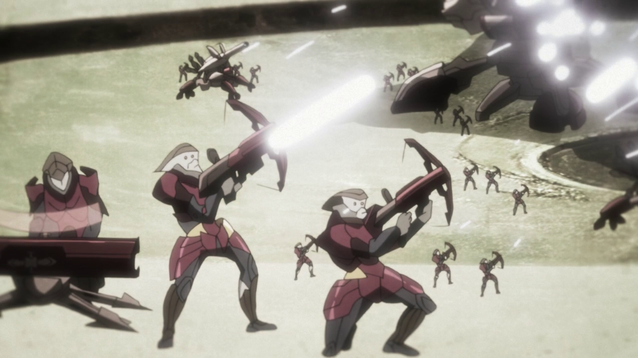 C’est ainsi que la seconde partie du film commence, après 45 minutes d’introduction aux évènements qui vont suivre. Le rythme est alors plus soutenu et la tension devient largement plus pesante. On ressent, en effet, l’impuissance des colons et de James Vega face à une menace dont ils ne connaissent rien. L’animé prend une tournure beaucoup plus dramatique et réaliste qu’auparavant. Le Lieutenant va essuyer de nombreux échecs face aux Récolteurs et perdre une grande partie de son équipe. L’image du super-héros tout puissant s’efface à mesure que l’équipe Delta se fait décimer et que la totalité de la colonie humaine est récoltée inexorablement.